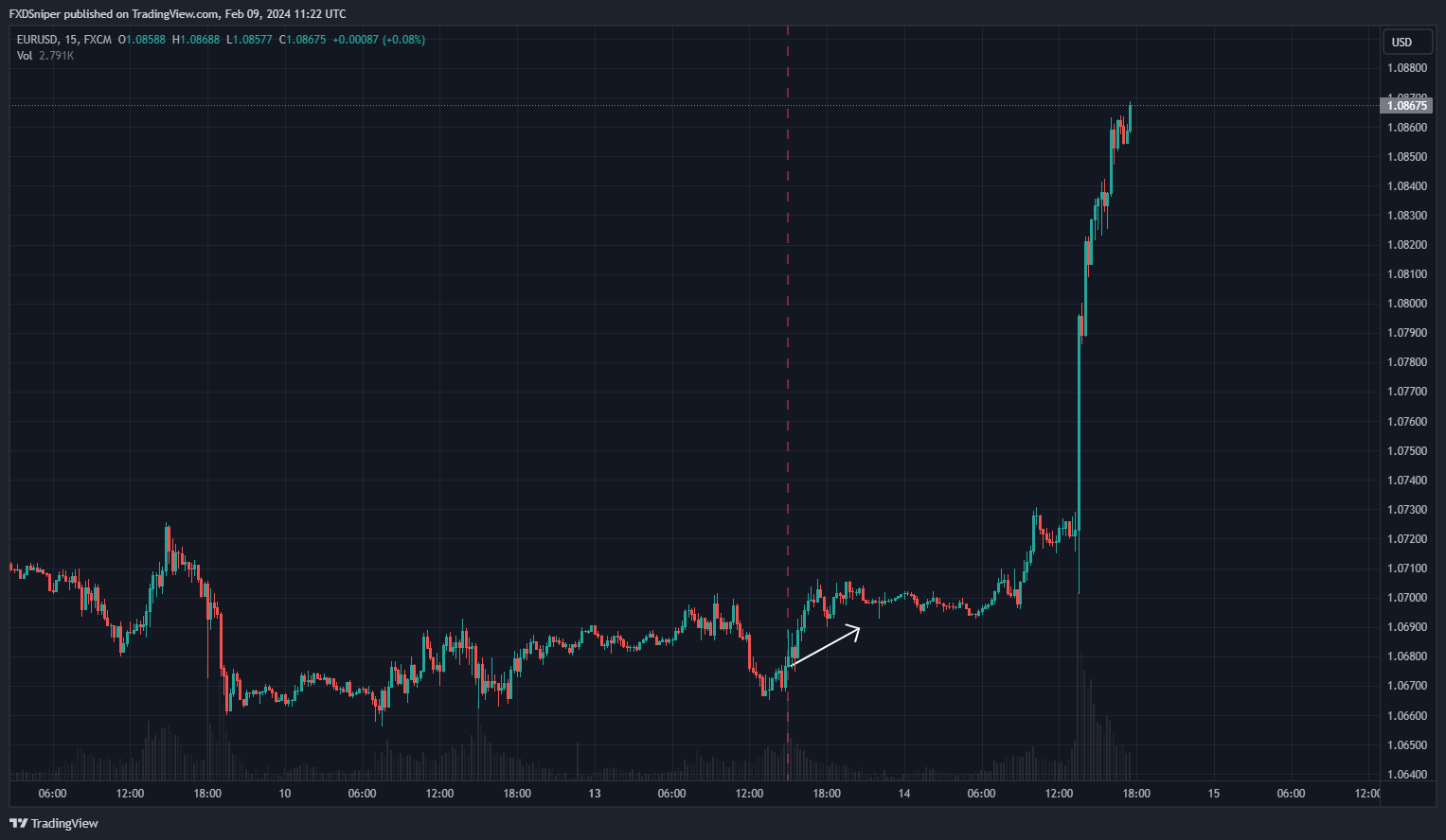 EUR/USD / 15M / Up or Down?By FXD Sniper / February 9, 2024 EUR/USD / 15M / Up or Down?EUR/USD is the number 1 trades pair in the forex space. Can you tell which way the price will go next? Take the quiz and find out if you stand a chance winning against the EU! 1 / 10Up or Down? Down Up 2 / 10Up or Down? Down Up 3 / 10Up or Down? Up Down 4 / 10Up or Down? Up Down 5 / 10Up or Down? Down Up 6 / 10Up or Down? Up Down 7 / 10Up or Down? Up Down 8 / 10Up or Down? Down Up 9 / 10Up or Down? Up Down 10 / 10Up or Down? Down Up Your score isThe average score is 73% 0% Restart quiz Give us a rating!