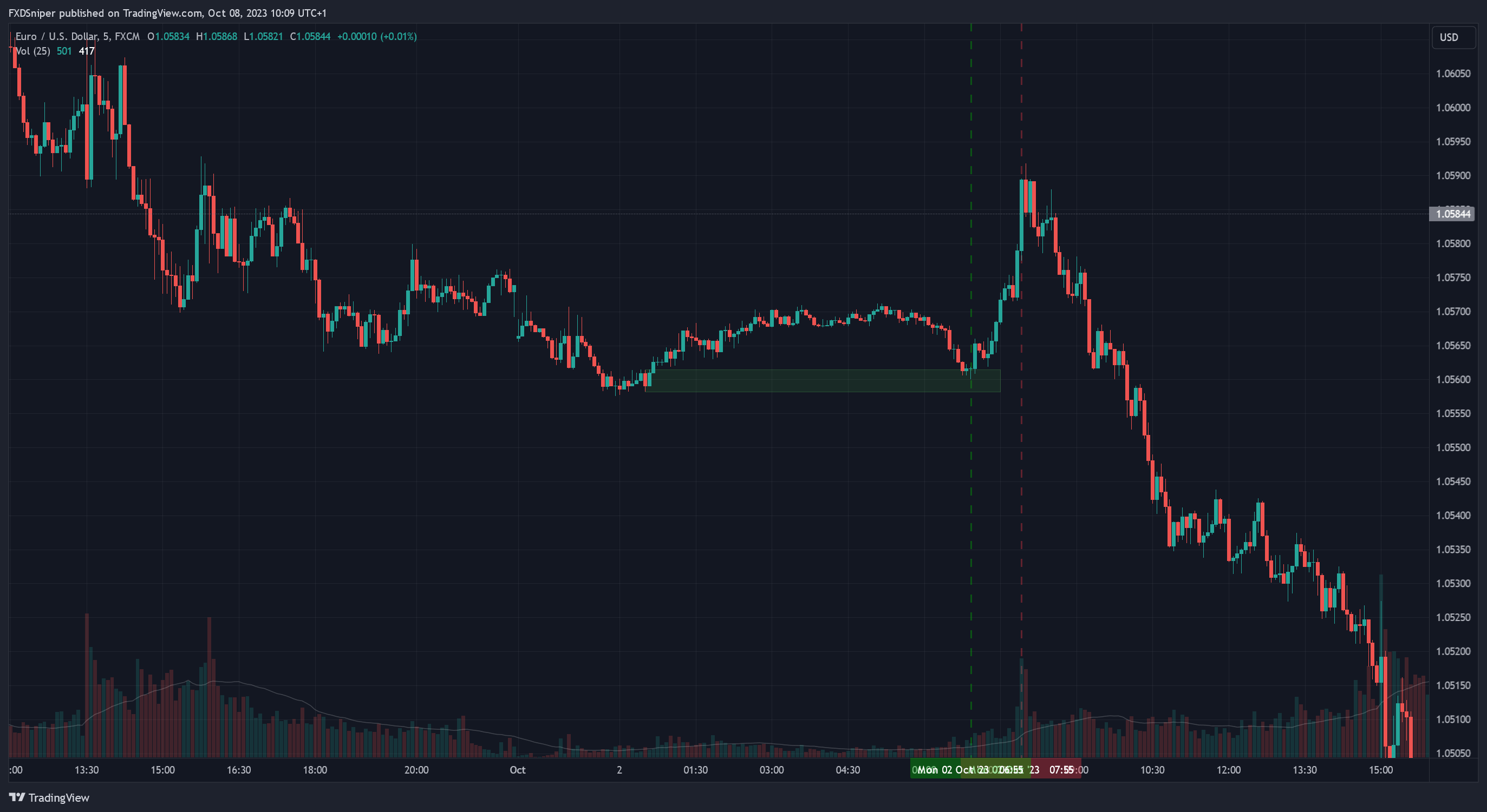 Why? Look what happened before the price shoot up, or what didn’t happen. There was no volume. This means that this entire move up was simply manipulated to grab the required volume to push the price down. Notice where the real spike in volume is? It’s right at the top of the bullish move, after which the price just melts all the way down.